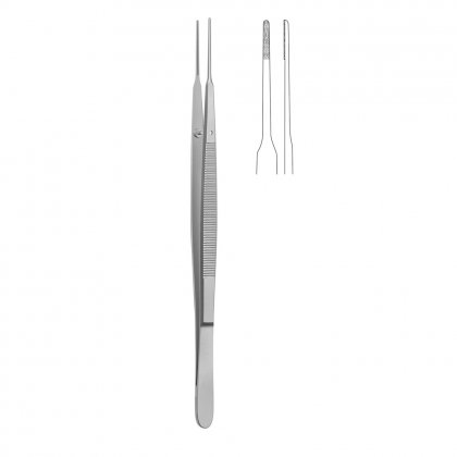 Dissecting forceps, 1 x 2 teeth, slim, curved