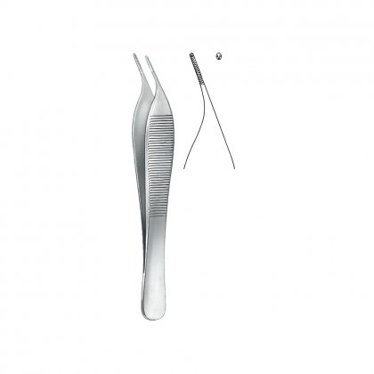 Mini-Adson forceps, 1 x 2 teeth, curved